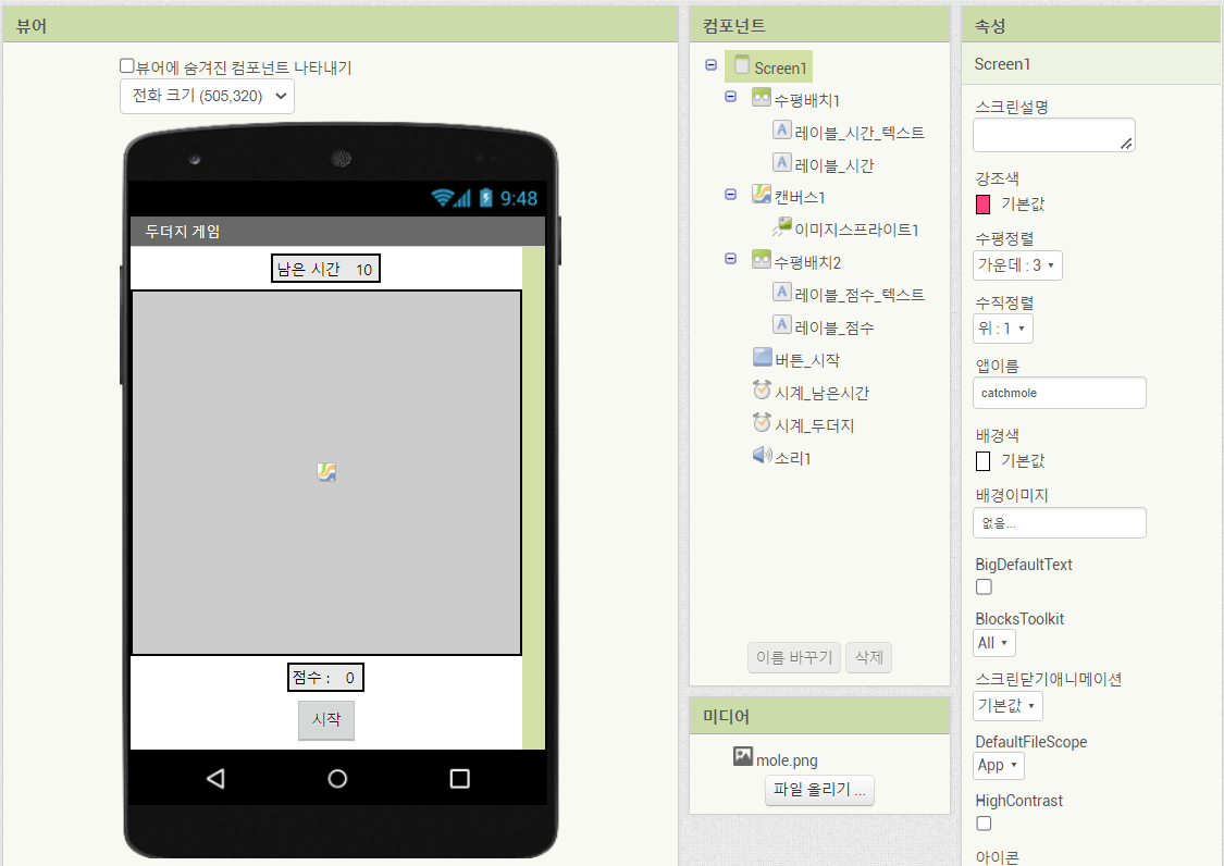 앱인벤터 예제. 두더지 게임