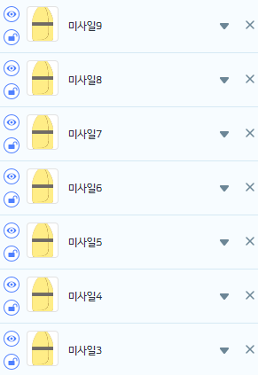 미사일을 7개를 복제하고 미사일3 ~ 미사일9 까지 이름을 만들어 줍니다.