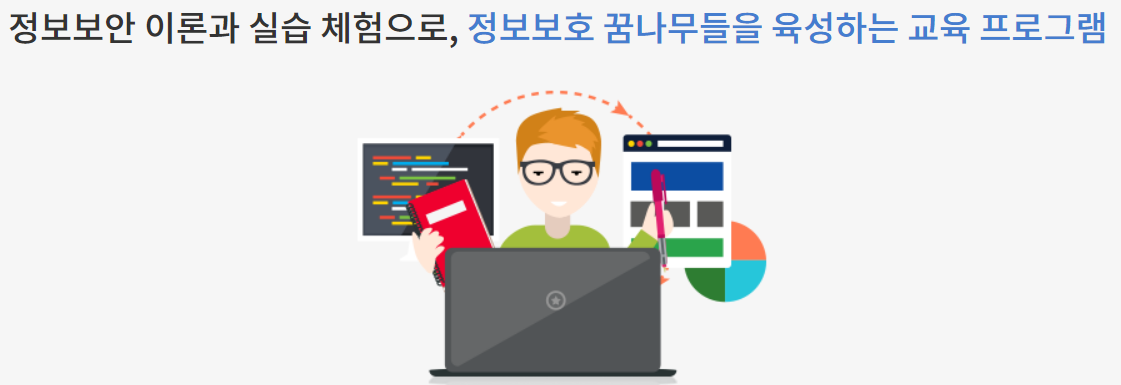 중학생 대상 사이버 보안과 정보 보호에 대해 관심과 흥미 유발하고자 구성한 프로그램으로,빅데이터, IoT 등 IT 중심의 시대에서 정보보안의 중요성을 인식하고, 이에 관심을 가지게 하여 미래의 정보보호 전문 인력으로발돋움할 수 있도록 도와주는 입문의 장을 제공하고 있습니다.