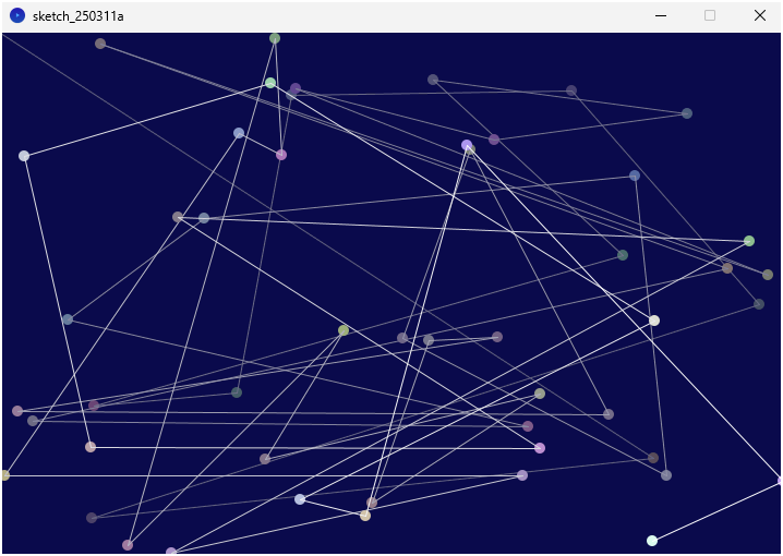 [프로세싱] 랜덤한 위치에 그려지는 원을 선으로 연결하기