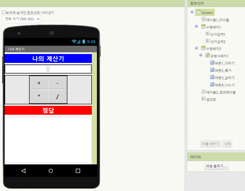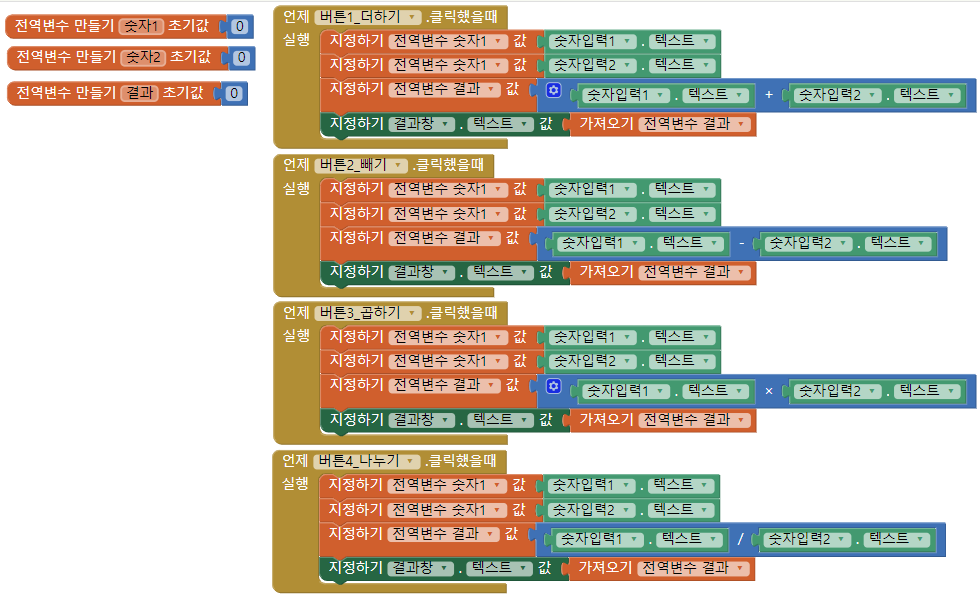 앱인벤터 예제. 계산기만들기(변수 사용)