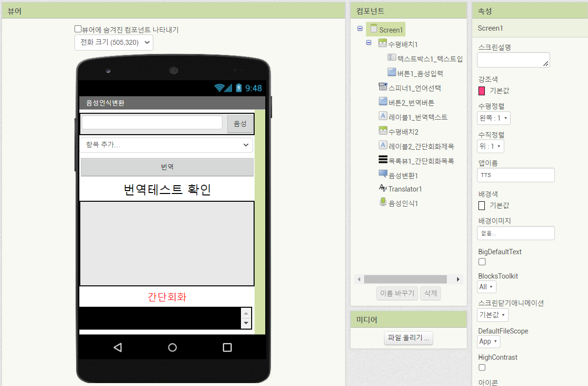 앱인벤터 예제. 음성인식 음성변환 앱 만들기