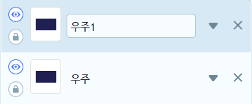우주 오브젝트를 복제하고 이름은 우주1로 바꾸어 줍니다.