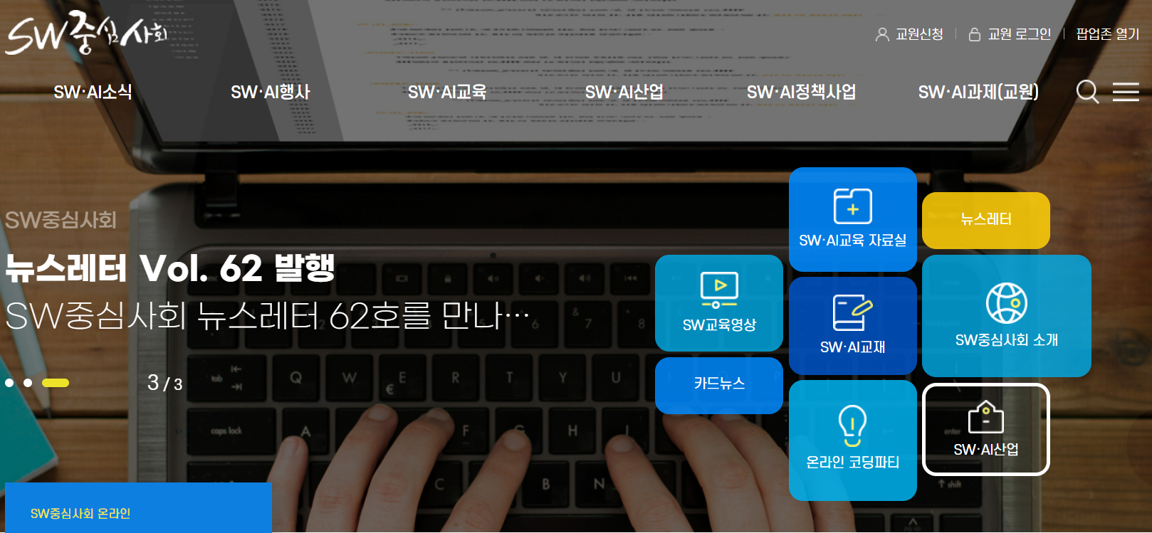 SW중심사회는 교육부, 과학기술정보통신부에서 운영하는 SW/AI 교육 사이트입니다.